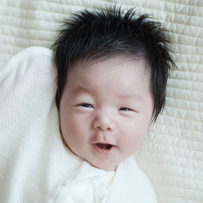 24일 SNS를 통해 "50일 촬영 때"라는 짧은 문구와 함께 올라온 사진에는 깜짝 놀랄 만큼 뚜렷한 이목구비를 자랑하는 하루의 모습이 담겼다.