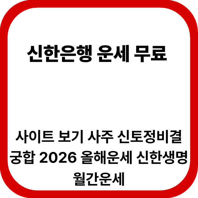 신한은행의 무료 운세 사이트를 통해 사주, 신토정비결, 궁합, 2026년 올해운세, 신한생명 월간운세를 활용하면 한 해의 계획과 인간관계에 큰 도움이 됩니다. 운세 정보를 적절히 활용하여 긍정적인 변화와 성장을 기대해 보세요.