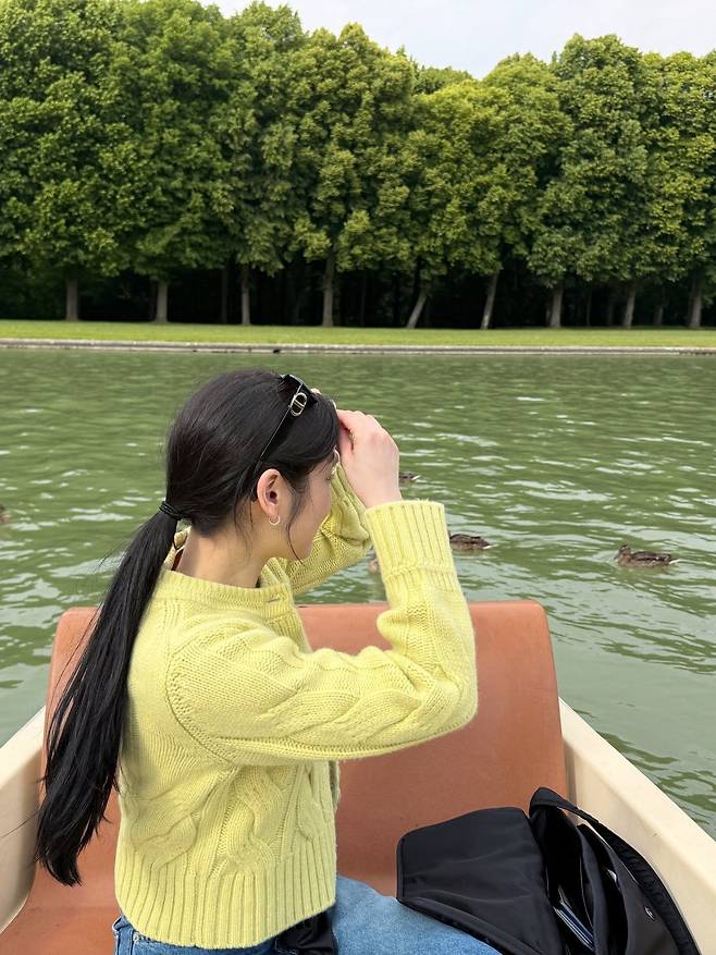 노란 니트를 입고 보트에 앉은 모습에선 또 다른 매력이 느껴졌어요.