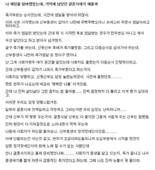 이 결혼식의 축가는 평생 기억에 남겠다..