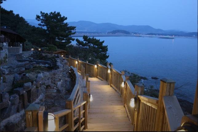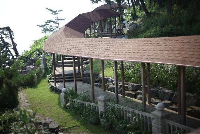 특히 회랑 중간중간에는 바다를 내려다볼 수 있는 전망 공간과 전통 한옥 스타일의 쉼터가 있어 걸음을 멈추고 앉아 바다를 바라보기에 딱 좋습니다.