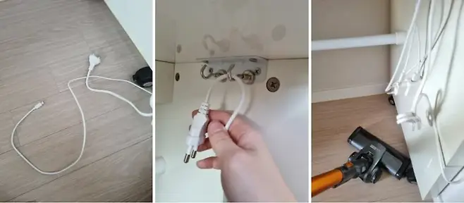 바닥에 널브러져있는 전선들도 휙-감아서 올려만 주세요. 책상에 앉아있을 때 발에 걸리적 거릴 일도 없고, 청소기 돌릴 때 얼마나 편한지 몰라요.