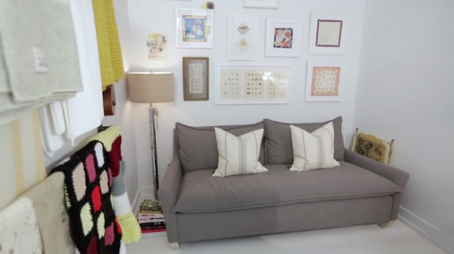 여분의 룸은 티비를 보거나 책을 읽을 수 있는 공간으로 만들었다. 소프트한 카우치를 놓고 파이프를 이용해 블링켓을 걸어 놓을 수 있게 만들었다.