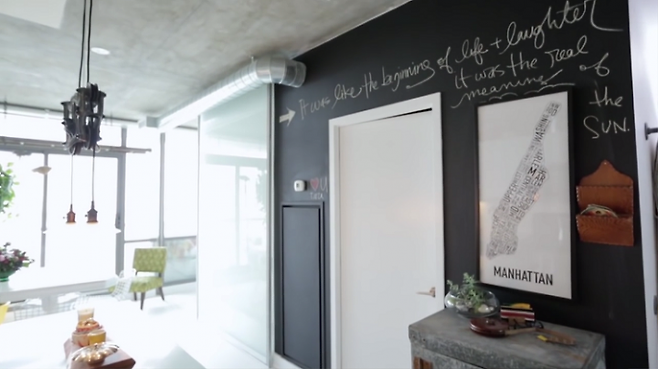 다양한 인테리어가 가능한 블랙보드는 현대 인테리어에서 매우 유용하게 사용할 수 있다. 젊은 층을 중심으로 많은 이들이 이 블랙보드 벽을 차용하고 있다.