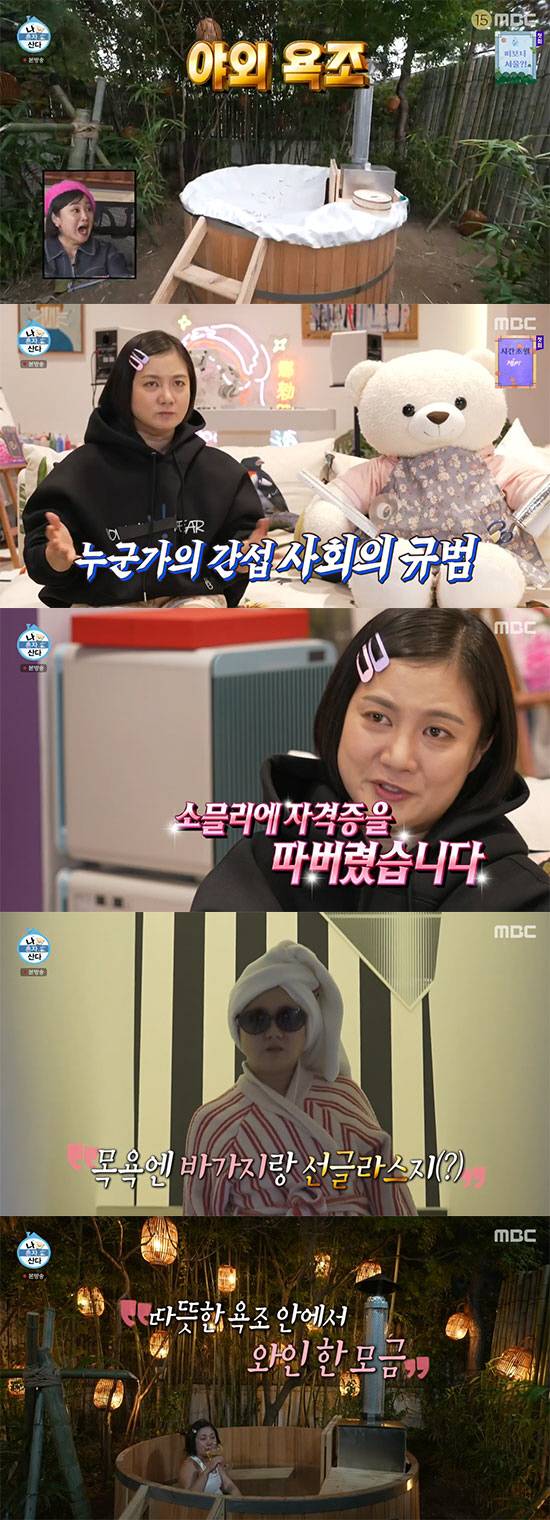 모든 준비를 마친 박나래는 야외 욕조에서 와인과 플로팅 야식을 음미하며 반신욕을 제대로 즐겨 보는 이들까지도 대리 만족하는 힐링의 시간을 보냈다.