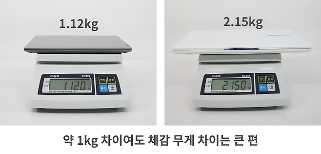 매일 노트북을 휴대해야 한다면, 1.2kg 이내의 노트북을 선택하는 것을 추천합니다.
