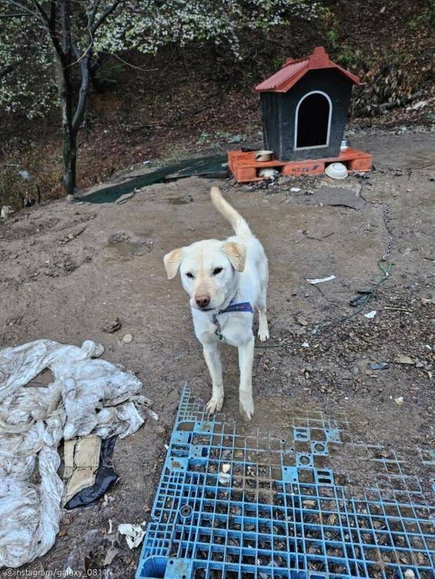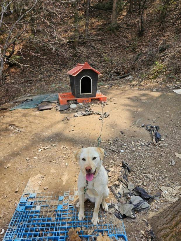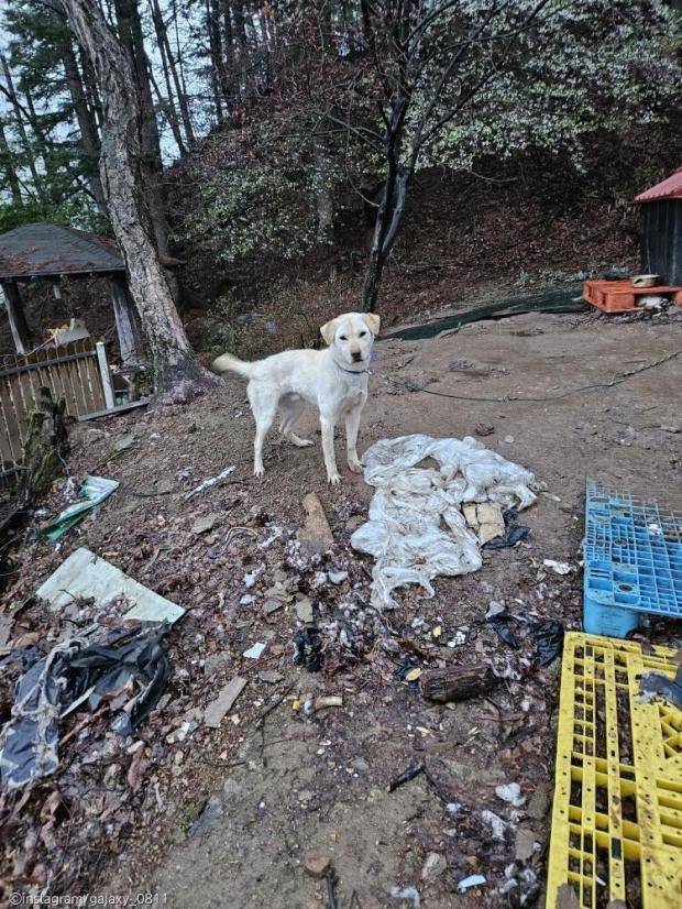 "물어보니 새끼 때부터 평생을 짧은 줄에 묶여있었다고 한다. 회사에 주인은 없었고, 일하던 화물 기사가 2년 전에 버리고 갔다고 들었다"는 A씨.