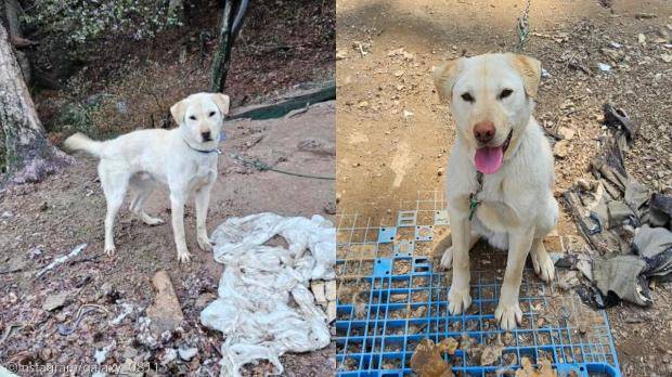 강아지의 이름은 '봉구'다. 나이는 2살로 추정되며, 아주 어린 시절부터 이곳에 묶여 있었던 것으로 추정됐다.