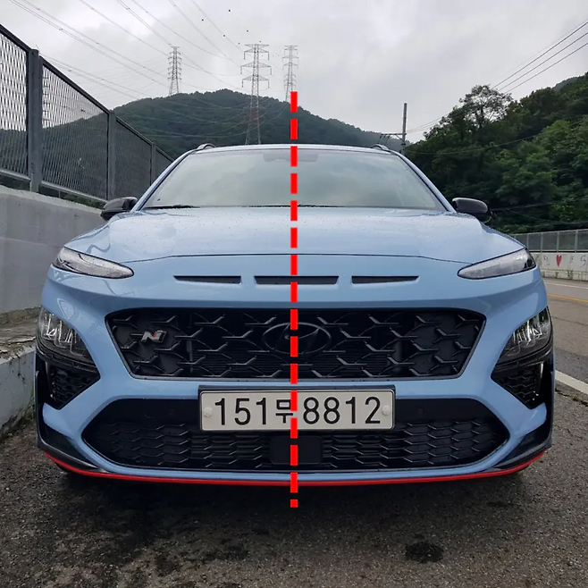 차량 중심선에서 번호판 중심이 10cm 이상 벗어나지 말아야 한다고 명시되어 있지만 차량의 구조 및 성능상 중심 부착이 어려운 경우에는 어쩔 수 없이 이런식으로 허용해주기도 합니다.