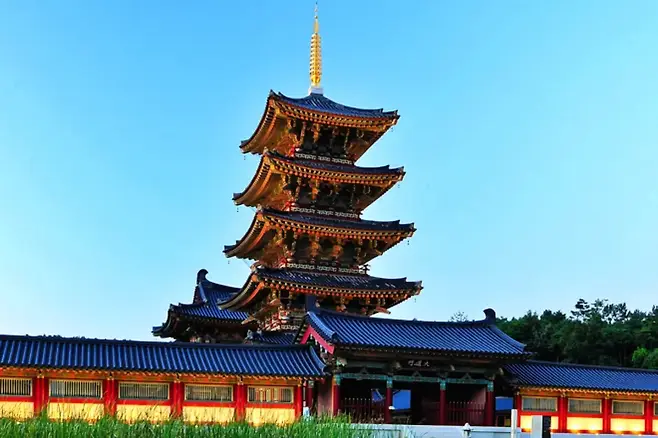 17년이라는 긴 시간(1994~2010년)에 걸쳐 공들여 조성된 백제문화단지는 삼국시대 백제 왕궁을 국내 최초로 재현한 역사 테마파크다. 이곳 중심부에는 백제 특유의 단청과 하앙(下昻) 구조가 눈길을 끄는 사비궁이 자리 잡고 있다. 실제 유적을 토대로 복원된 건물들은 규모가 크고 정교해, 고대 백제의 웅장함을 오롯이 느낄 수 있다.