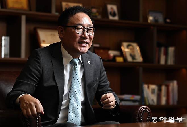 17일 집무실이 있는 서울 강서구 마곡동 디와이피엔에프(DYPNF) 마곡 사옥에서 만난 조 회장은 “산을 다른 관점에서 봐 보자”면서 입을 뗐다. 그는 산악 스포츠가 학교 체육을 활성화시킬 수 있고 더 나아가 고급 인성 교육의 장이 될 수도 있다고 믿는다고 했다. 산이 갖고 있는 교육적 가치를 어떻게 더 부각시킬 것인가, 공교육 테두리 안으로 끌고 들어갈 것인가를 고민했다. 다음은 일문일답.