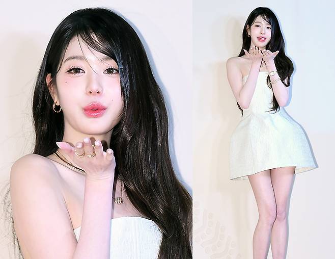 장원영은 실루엣이 돋보이는 화이트 미니드레스를 입고 압도적 비주얼로 현장을 압도했습니다.