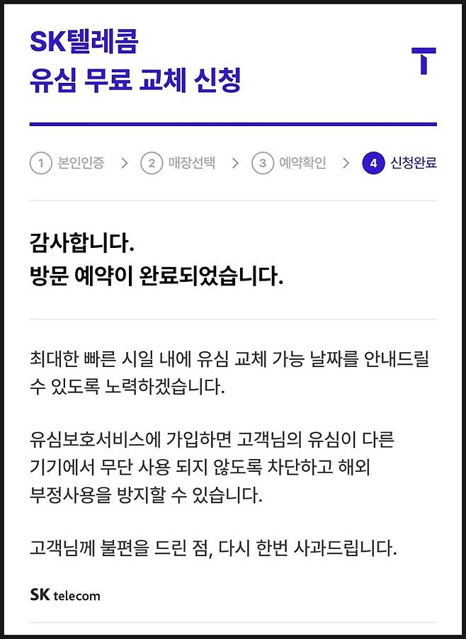 저도 어제(4/28) 출근길에 SKT 대리점 앞을 지나갔는데, 아침 9시부터 유심 교체하려는 사람들로 줄이 엄청 길게 늘어서 있더라고요. 점심시간에 겨우 시간을 내서 가봤더니 이미 유심은 다 떨어졌고, T월드에서 예약하라는 말만 들었습니다. 그것도 대기 시간이 너무 길어서 겨우 겨우 신청했네요... 정말 발 빠른 대처가 아쉬운 상황입니다.