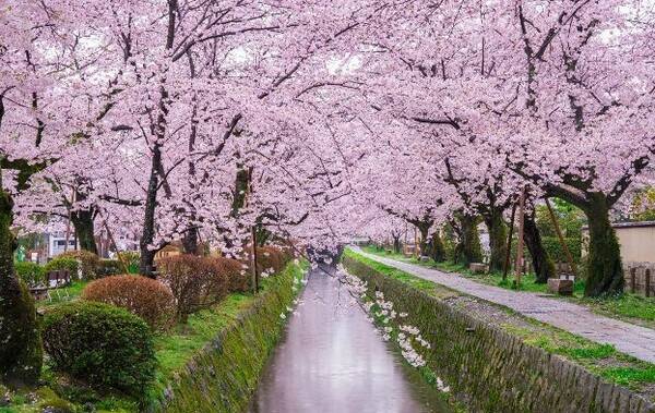 교토 대표 벚꽃 명소인 철학의 길은 카쿠지(은각사) 근처에서 시작되는 운하를 따라 약 2km 구간에 벚나무가 줄지어진 거리입니다. 거리 양 옆 벚꽃 터널이 환상적인 풍경을 만들어 산책하며 벚꽃을 감상하기 좋은데요.