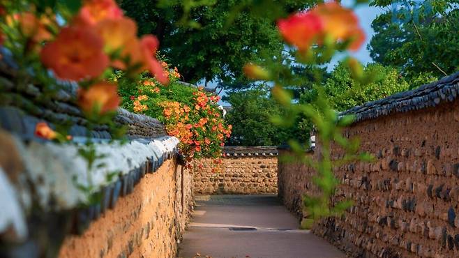 그런 여행지 중 하나가 바로 대구광역시 달성군에 자리한 ‘남평문씨 본리세거지’다. 고택과 담장, 꽃의 조화가 이토록 완벽한 장소는 흔치 않다. 이곳의 담장을 타고 흐르는 능소화는 단지 꽃 이상의 아름다움을 전한다.