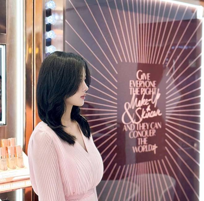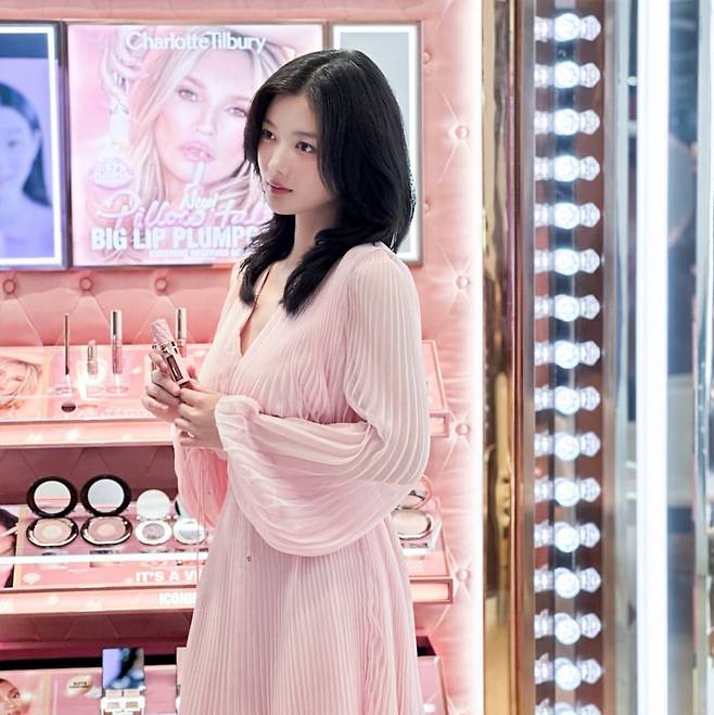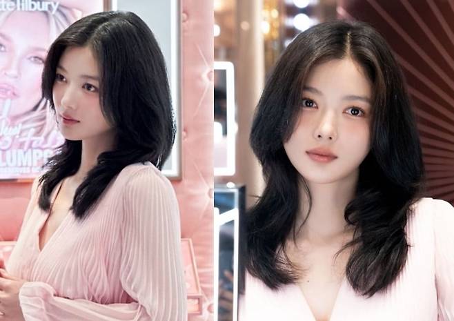 김유정은 쇄골 아래까지 오는 중단발 기장에 레이어드 커트를 하고 S컬과 C컬이 섞인 빌드펌 헤어스타일로 그윽한 여신 분위기를 자아냈습니다.