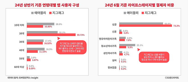 이러한 상황에서 에이블리와 지그재그는 각각의 도전에 직면해 있습니다. 에이블리는 사용자 수는 많지만, 이들의 구매력이 충분히 성장하기까지 시간이 필요합니다. 특히, 이들이 나이가 들어가면서 선호할 브랜드와 쇼핑몰을 확보해야 하는데, 이 분야에서는 이미 지그재그가 강력한 입지를 가지고 있어 쉽지 않은 상황입니다.