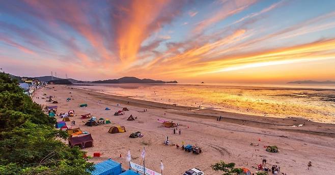 해변가에서는 인근 피크닉 용품 대여 업체에서 용품을 대여해 바닷가 피크닉을 즐길수도 있는데요. 해수욕장을 따라 길게 늘어선 상점가 곳곳에 감각적인 카페와 칼국수 가게가 많아 오션뷰를 감상하며 맛있는 식사 시간을 보내기에도 좋습니다. 20여분을 더 달리면 이국적인 카페가 가득한 구봉도가 있어 당일치기 코스로 함께 추천합니다.