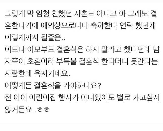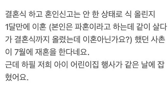 재혼사촌결혼식VS아기어린이집행사
