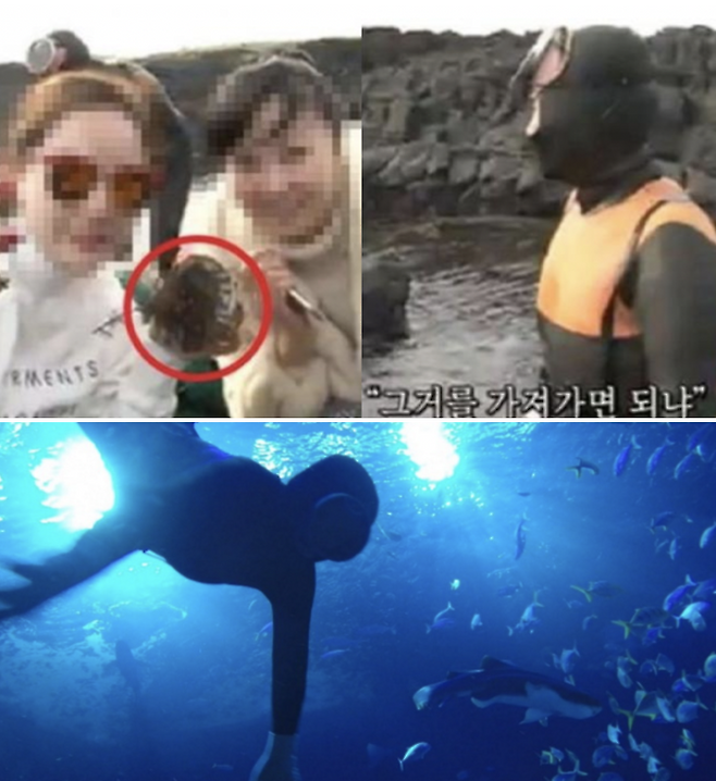 해녀 할머니 전복 절도 사건도 유명합니다. 지난 2016년 방송된 KBS1 '인간극장'에는 해녀 할머니가 물질을 해 소라와 전복을 따는 장면이 그려졌는데요. 이때 중국인 관광객 두 명이 할머니 곁으로 다가와 허락도 없이 전복을 들고 인증샷을 찍었으며 급기야 몰래 훔쳐가 누리꾼들의 눈살을 찌푸리게 했죠. 다행히 곁에 있던 남성의 도움으로 무사히 전복을 되찾았지만 사과 한마디 없이 자리를 뜬 중국인 관광객들의 행위는 많은 이들의 분노를 자아냈습니다.