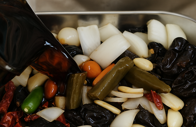 λ¬Ό, κ°μ₯, μ€ν, λ§€μ€μ‘μ λλΉμ λ£κ³ μ€λΆμ λμ΄κΈ°
