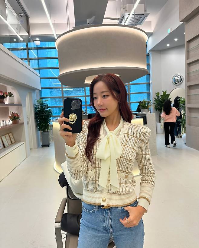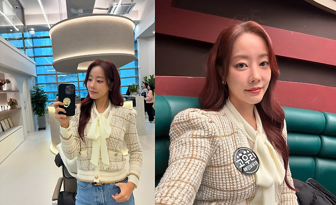 공개 된 사진 속 고우리는 아이보리 컬러의 리본 블라우스를 입고 베이지 컬러의 니트 가디건과 청바지를 입어 세련되면서 캐주얼한 데일리 스타일링을 선보였다. 또한 웨이브진 헤어스타일링과 자연스러운 메이크업을 하여 깔끔한 스타일링을 선보였다.