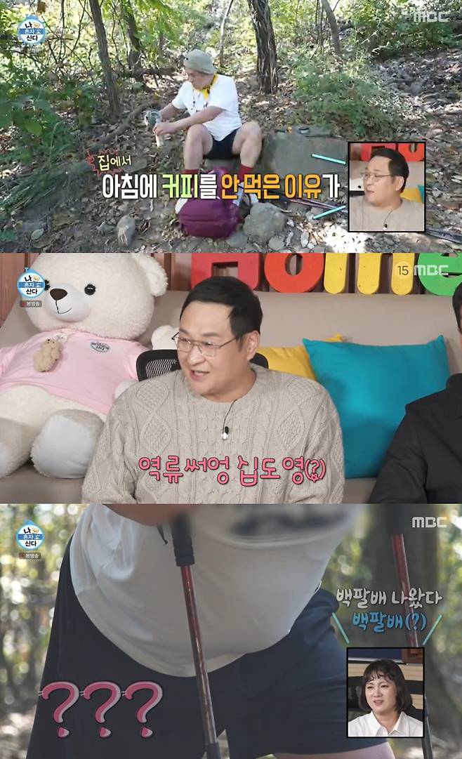 하지만 힘든 산행 탓에 갑자기 헛구열질을 해 걱정을 자아냈다. 지팡이를 짚은 구성환의 배에 '베놈' '백팔배' '물을 넣은 거 같다'라는 놀림이 이어졌다. 구성환은 "살 빼야지"라며 빵 터졌다.