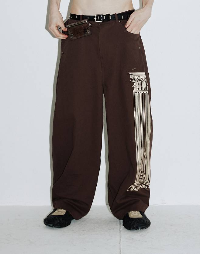 단순한 팬츠가 아니라 서양의 기둥 건축물 디자인에서 영감을 받은 그래픽이 디자인으로 들어가