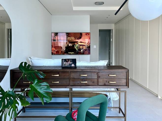 제가 해외에 간 3년 동안 언니 집에 잠시 두었는데, 가구 샵에서의 스타일링과 전혀 다르게 쓰여지고 있었어요. 실제 집에 들어가니 독보적인 디자인과 다르게 실제로는 스타일링과 배치가 꽤나 어렵더라구요.