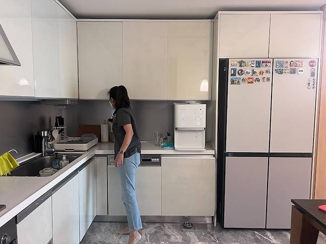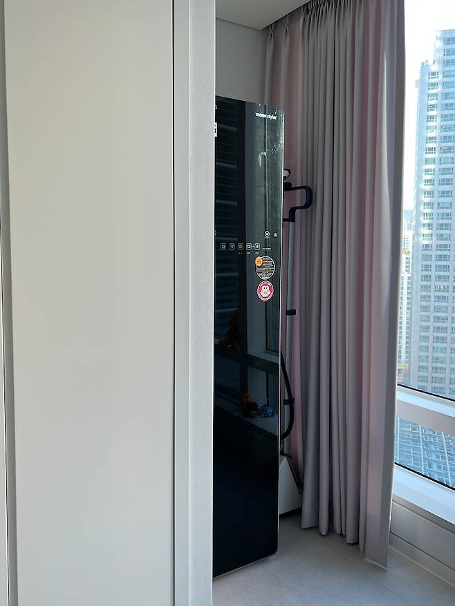 저희 집은 스타일러가 꼭 필요한데, 정말 볼 때마다 아주 큰 눈엣가시 같은 존재였어요. 남들은 뭐 그렇게 안 이상하다고 별 거 아니라고 하는데 저는 정말 모든 분위기가 잘 이어지다가 저기에서 다 깨진다는 느낌이 들어 저한테 유독 신경쓰이는 물건이었어요.