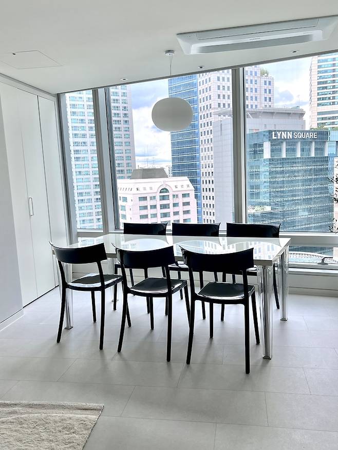 지금은 너무 모던하고 영롱한 테이블이 보이는 공간인데 저 테이블은 신혼 때 저한테 정말 큰 시련을 줬고 이번 인테리어할 때 가장 고민이 되었던 식탁이에요. 제가 신혼 때 뭣도 모르고 카르텔에서 저 영롱한 식탁 다리에 반해서 사버린 저한테 초고가인 900만원이 넘는 식탁이에요.