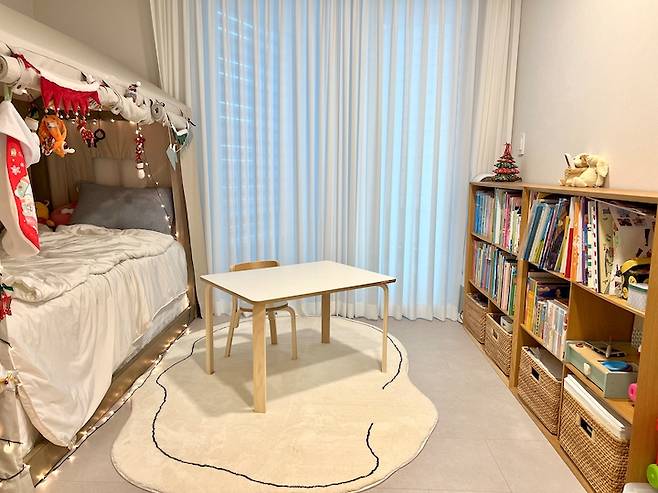 지금은 크리스마스 시즌이라 저희 집에 210cm 대형 트리가 들어와 있어요. 10월에 만들었는데 크리스마스 설렘이 그만큼 남들보다 더 오랫동안 즐길 수 있어요. 매년 엄마랑 어렸을 때부터 트리를 만들어서 엄마하면 크리스마스가 떠올리고, 12월이 오면 엄마가 생각나는데 저도 제 딸에게 크리스마스의 감성을 즐기는 낭만을 물려주고 싶었어요.