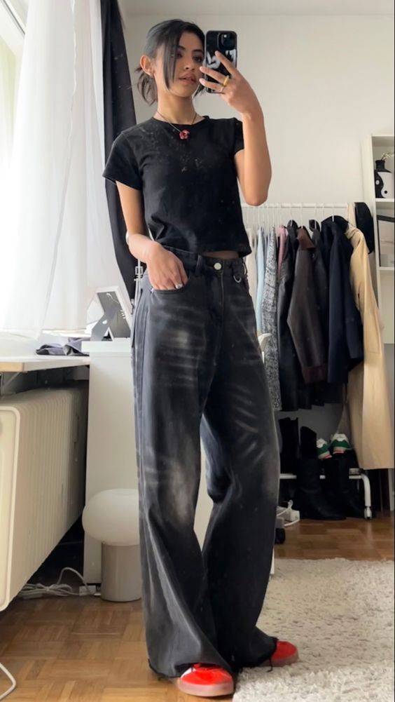 그렇다면 반팔티와 와이드팬츠를 활용해서