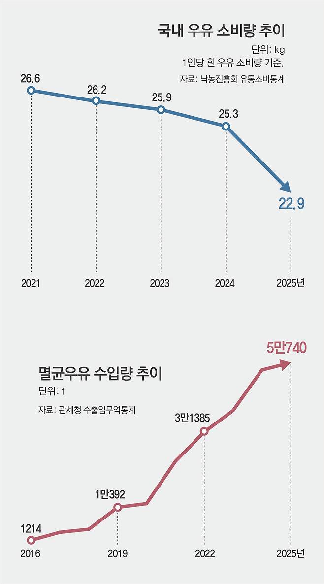 국산 우유 가격을 둘러싼 소비자 불만이 다시 수면 위로 떠오르고 있다. 해외 현지 물가보다 비싼 가격에 지친 소비자들은 값싼 수입 멸균 우유로 발길을 돌리는 추세다. 저출생에 따른 낙농·유업계의 고민도 깊어지고 있다.》