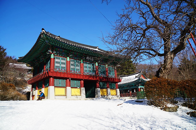 계곡 산책을 마치고 백련사에 도착하면 겨울 숲과 어우러진 적막한 분위기가 마음을 자연스레 가라앉혀 줍니다.향적봉 오르기 전 잠시 머물러 명상처럼 쉬어가기 좋은 곳입니다.