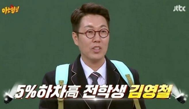 그래서 '아는형님' 초반에 그는 재미없는 컨셉을 가져가며, 노잼 개그맨이라고 다른 멤버들에게 놀림을 받을 수밖에 없었다. 김영철은 이런 노잼 이미지로 인해 스트레스와 상처를 많이 받았다고 고백하기도 했다.