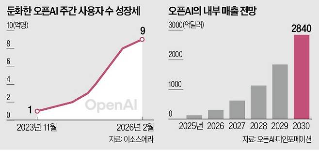 이런 발언은 시장의 불안감이 커지자 나왔다. 월스트리트저널(WSJ)은 전날 오픈AI가 지난해 말까지 목표한 주간 사용자 10억명 확보에 실패했다고 보도했다. 사용자는 이 회사의 매출과 직결된다. 사용자들이 구글과 앤스로픽 등으로 이탈한 탓이다. 지난 2월 기준 주간 사용자는 9억명 수준이다.