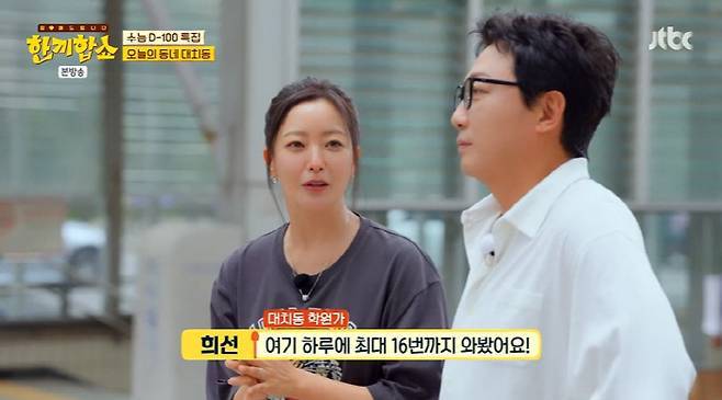 이 지역에 자주 와봤다고 밝힌 김희선은 “사실 하루에 최대 16번까지 온 적이 있다. 대치동 학원 셔틀 경험자다”라고 말해 시선을 모았다. 이어 “이곳은 학원이 워낙 많아서 엄마들이 안 올 수가 없다. 정말 학생 절반, 학부모 절반이다. 그래서 이 동네 음식이 그렇게 맛있는 것 같다”고 덧붙이며 현장 분위기를 전했다.