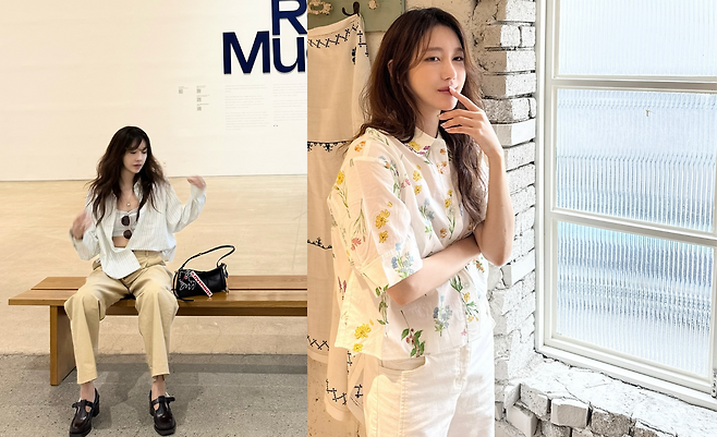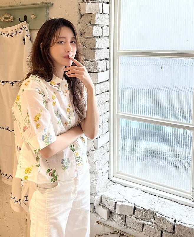 배우 이지아가 화사한 플로럴 패턴의 흰색 원피스를 선택해 봄날의 로맨틱한 분위기를 연출하고 있다. 작은 꽃무늬가 전체적으로 프린트된 원피스는 페미닌한 매력을 극대화하며, 편안한 실루엣으로 일상적이면서도 우아한 스타일을 완성했다. 벽돌 배경 앞에서 포즈를 취한 모습이 빈티지한 감성을 더하고 있다.