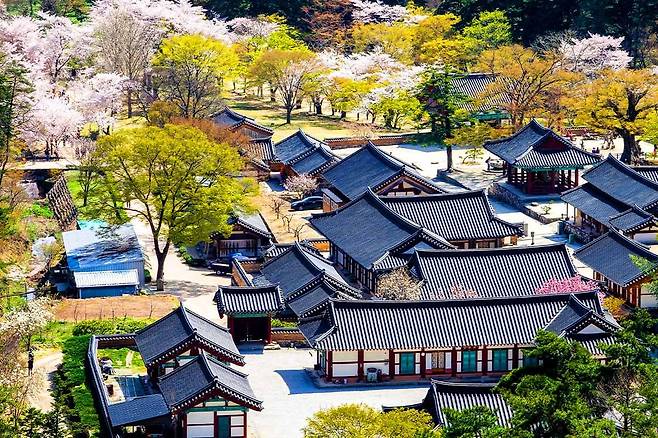 전북 부안에서는 벚꽃과 천년고찰이 함께 어우러진 풍경을 만날 수 있습니다.