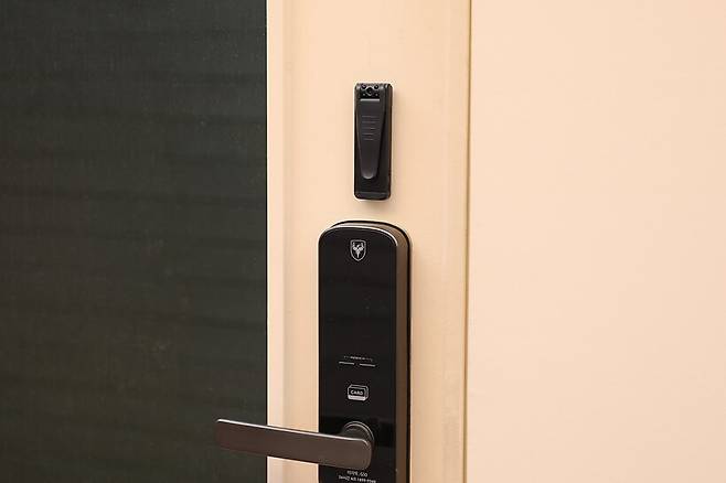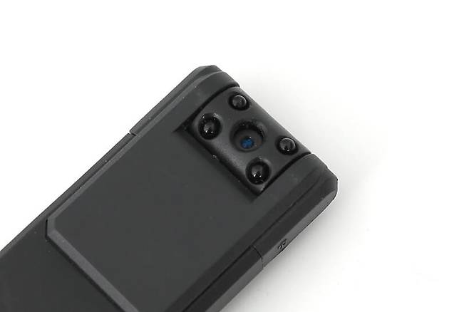앞면의 제일 위쪽에는 카메라 렌즈가 위치해 있다. 렌즈 양옆에는 네 개의 LED가 심어져 있는데, 야간 촬영에 사용되는 적외선 조명이다.