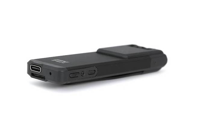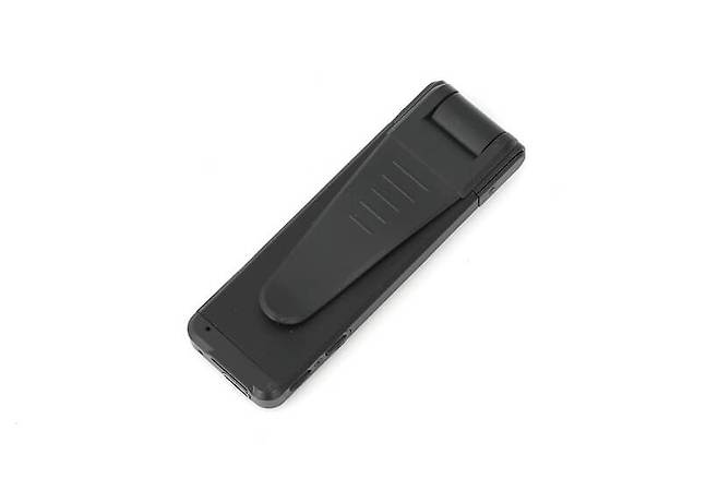 본체를 뒤집어보면 뒷면에는 클립이 큼직하게 자리 잡고 있다. 클립은 액션캠 본체를 주머니에 넣거나 가방끈에 매달 때 고정해주는 역할을 한다. 뒷면 아래쪽에 있는 작은 구멍은 마이크가 내장된 곳이다.