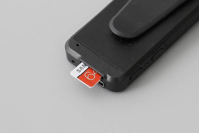 본체 왼쪽 측면에는 두 개의 버튼이 있다. 위쪽 버튼은 사진 촬영 버튼이고, 아래쪽은 녹음 버튼이다.