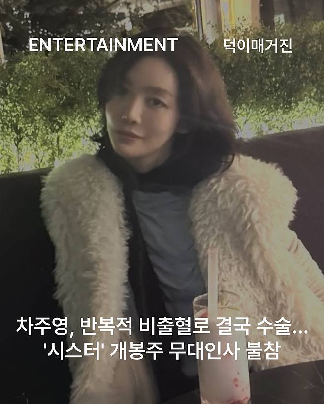 차주영 소속사 고스트스튜디오는 25일 공식 SNS를 통해 "차주영 배우는 건강상의 사유로 예정되어 있던 공식 일정 및 일부 활동에 당분간 참석하지 못하게 됐다"고 밝혔습니다. 이어 "장기간 지속된 반복적인 비출혈(코피) 증상으로 정밀 검사와 치료를 받아왔으며, 의료진의 소견에 따라 더 이상 미루기 어려운 이비인후과 수술을 진행하게 됐다"면서 "현재는 수술 후 회복 및 경과 관찰이 필요한 단계로, 회복 기간 동안 작품 홍보 활동을 포함한 공식 일정 참여가 어려운 점 너른 양해 부탁드린다"고 설명했습니다.