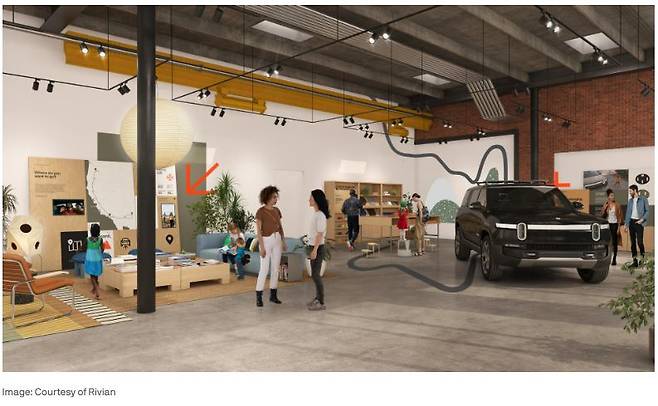 자동차를 사 본 경험이 있다면 공감할 것이다. 영업 사원과 책상이 줄지어 있는 대리점 분위기의 그 위압감(?). 그러나 리비안 쇼룸은 다르다. 마치 이케아 매장같다. 그러면서 전기 자동차에 대해 궁금한 점을 물어보거나 차량을 예약하거나 R1S 또는 R1T 트럭을 시승할 수 있다. 일종의 프리스타일?
