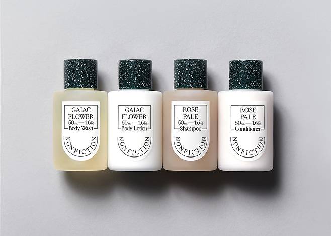 유니크한 향기로 많은 사랑을 받고 있는 논픽션의 미니 트래블 세트. 일부 면세점에서도 해당 구성을 만나볼 수 있다. 상탈크림, 젠틀나잇, 가이악플라워 바디케어 중에서 향기 선택이 가능하며 헤어케어의 경우 로즈페일 세트로 제공된다.