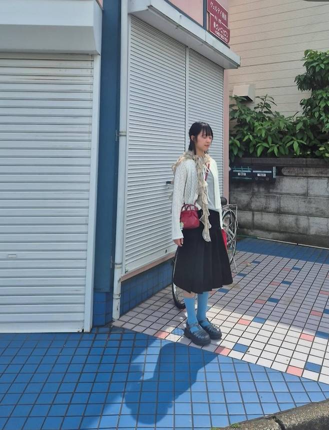 여기에 레드 컬러의 가디건을 걸쳐 원피스와 보색 대비를 이루며 강렬한 컬러 매치를 통해 스타일에 활력을 불어넣었습니다.