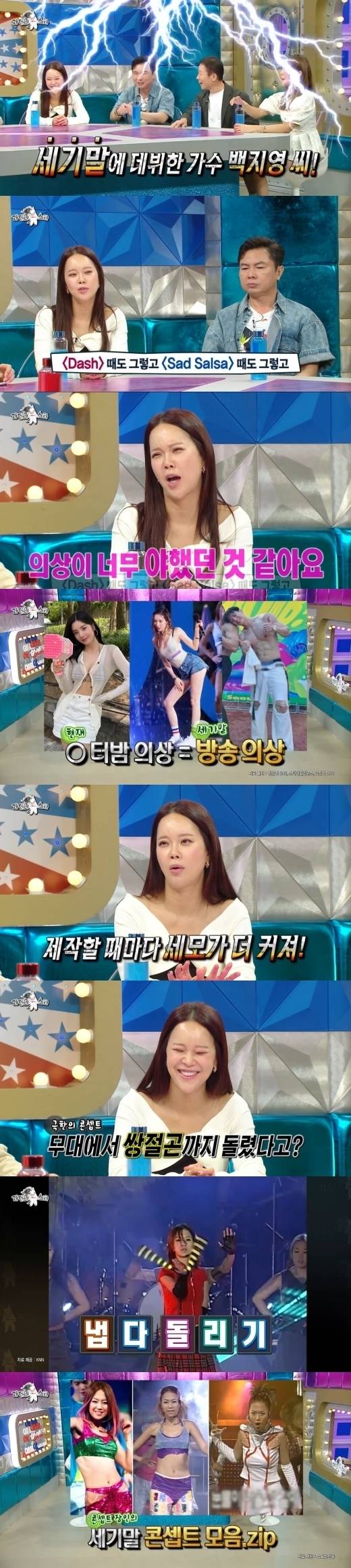 백지영은 자신이 세기말 콘셉트 장인이었다며 "'대시(Dash)' 때도 그렇고 '새드 살사(Sad Salsa)' 때도 그렇고 의상이 너무 야했다. 지금보다 훨씬 더 파격적이었다"고 말했다.