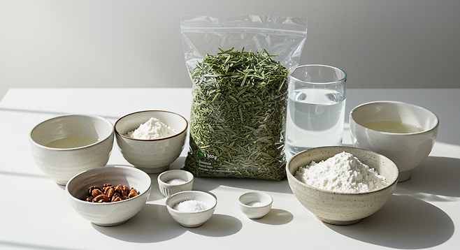- 쑥을 깨끗이 씻어 물기를 뺀 뒤 잘게 다듬어 준비합니다.