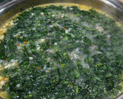 - 냄비에 물과 소금을 넣고 끓입니다. 물이 끓으면 쑥을 넣고 5분간 삶아줍니다.